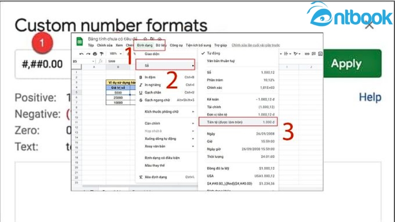 Google Sheets cho phép tùy chỉnh định dạng số để hiển thị dữ liệu theo ý muốn. Dưới đây là ba quy tắc quan trọng khi định dạng số, phân tách bằng dấu chấm phẩy ( ; ).
